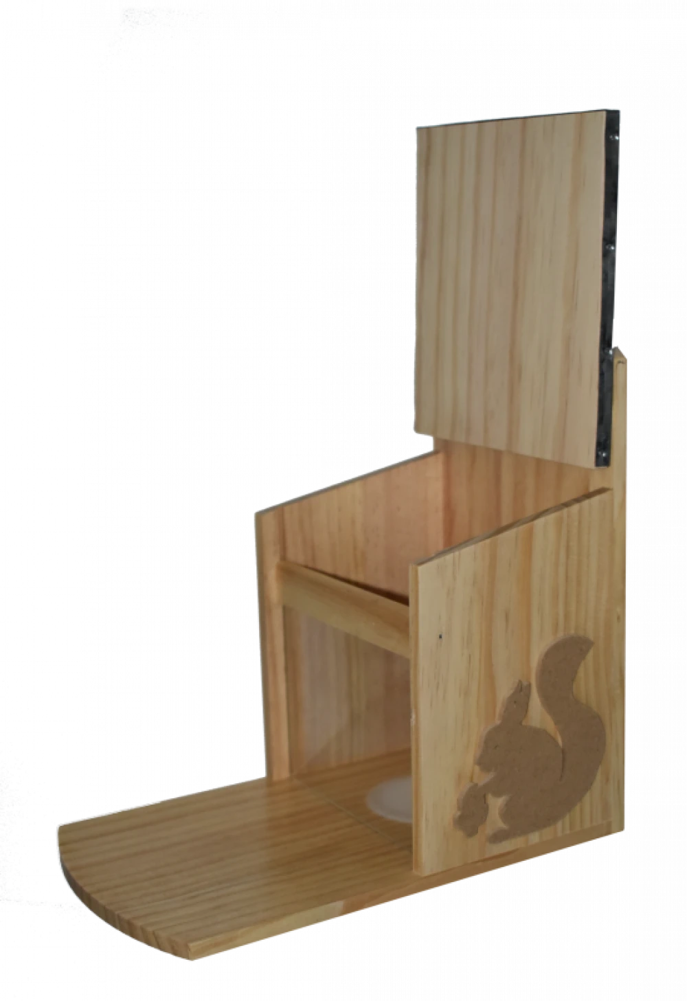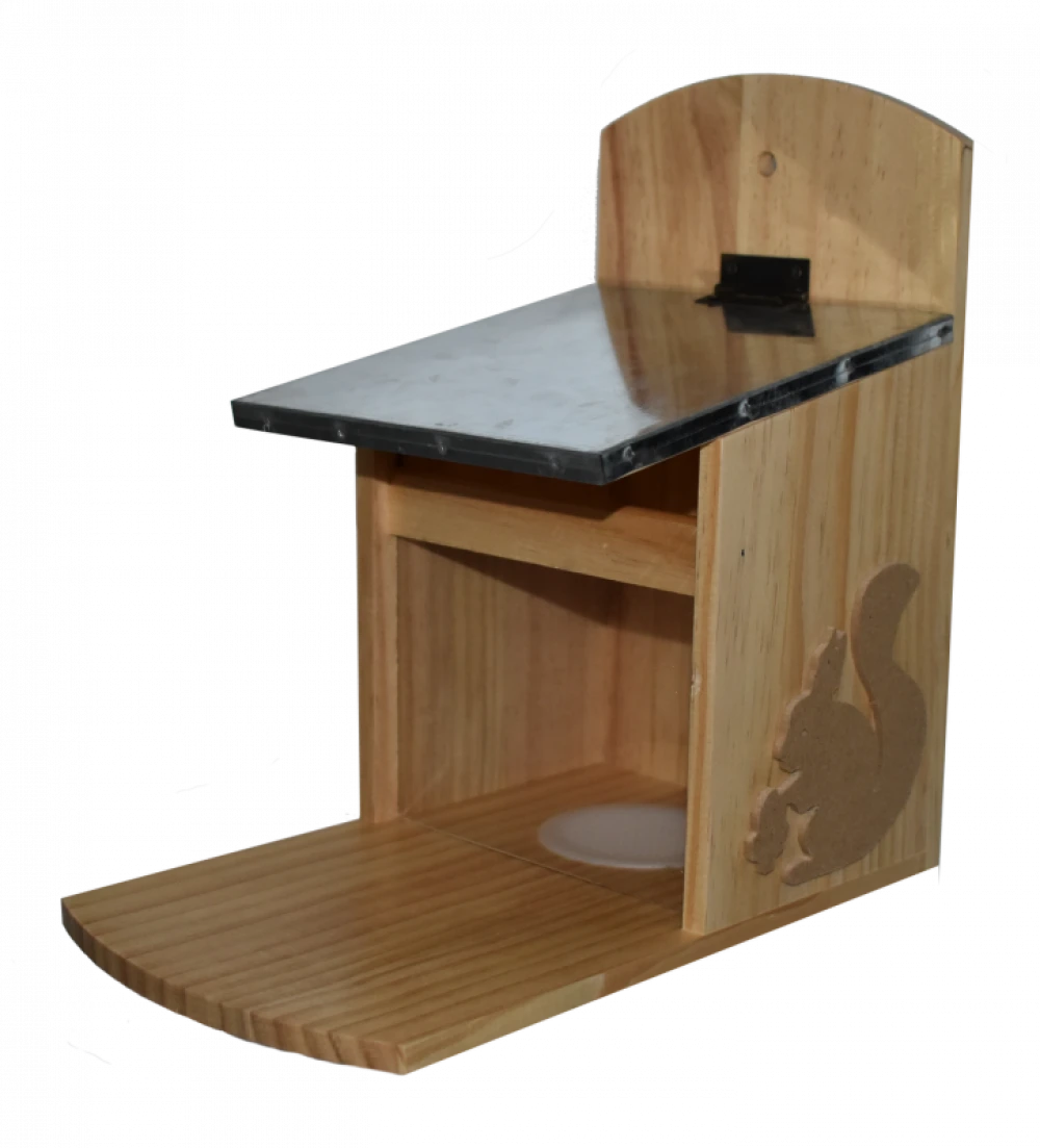 Passend zum Eichhörnchenfutter bieten wir ein Eichhörnchenhaus aus unbehandeltem Naturholz an.