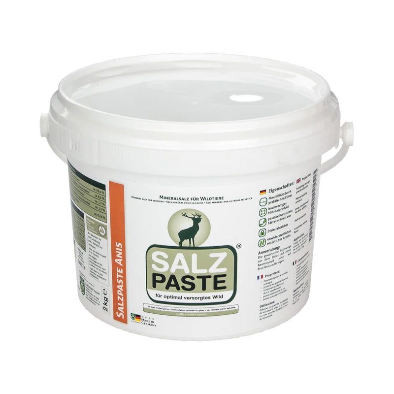 Die Salzpaste ist ein hochwertiges Mineralprodukt mit pastöser Konsistenz. Durch ihre flexible Anwendung können Sie das Wildgebiet an jeder gewünschten Stelle im Revier optimal mit den notwendigen Salzen und Mineralstoffen versorgen. Die handliche Verpackung ermöglicht es Ihnen, die Salzpaste bei jedem Reviergang mitzuführen.