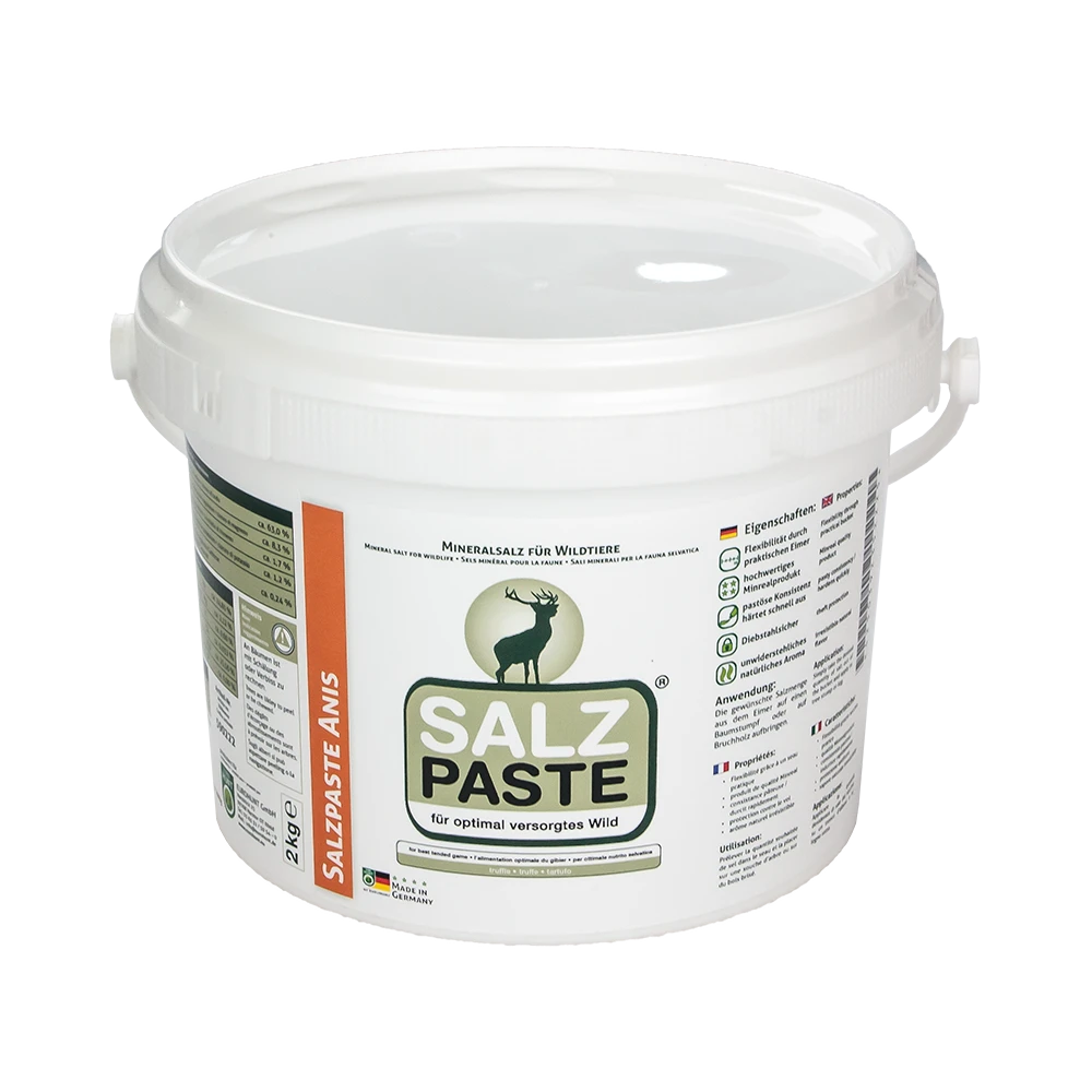 Die Salzpaste ist ein hochwertiges Mineralprodukt mit pastöser Konsistenz. Durch ihre flexible Anwendung können Sie das Wildgebiet an jeder gewünschten Stelle im Revier optimal mit den notwendigen Salzen und Mineralstoffen versorgen. Die handliche Verpackung ermöglicht es Ihnen, die Salzpaste bei jedem Reviergang mitzuführen.