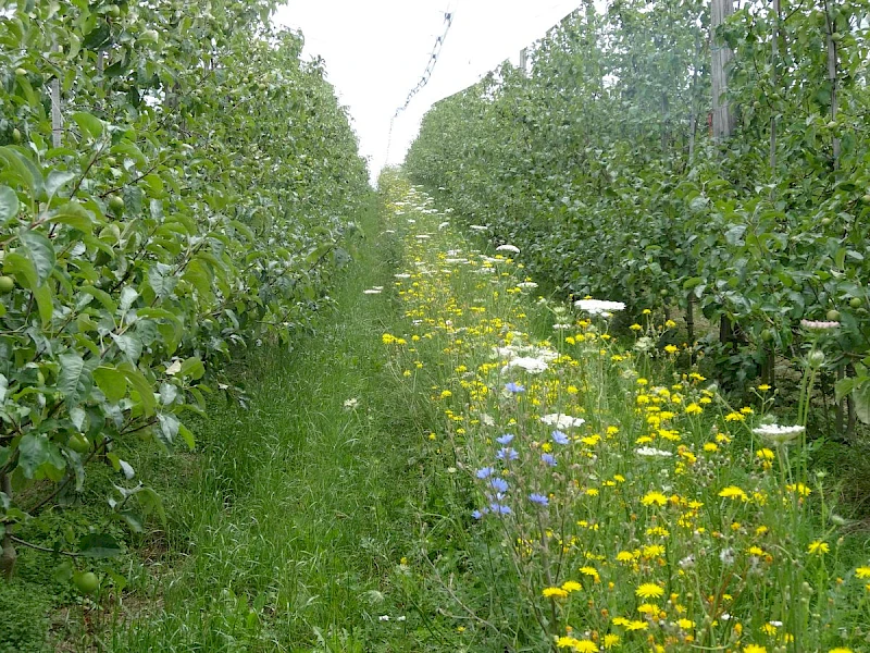 Die UG - Reb- und Obstzeilen-Mischung (Regiosaatgut) dient der Begrünung der Streifen zwischen Rebzeilen oder Obstanlagen, schützt vor Bodenabschwemmung, erleichtert die Befahrung bei ungünstiger Witterung und bietet Lebensraum für Nützlinge. Die Streifen sind mahdverträglich, bestehen aus vielen eher niederwüchsigen Arten und werden maximal 60 cm hoch, wodurch Lichtgenuss und Durchlüftung für Weinstöcke und Obstreihen gewährleistet sind.