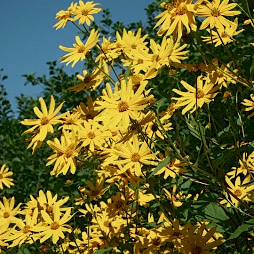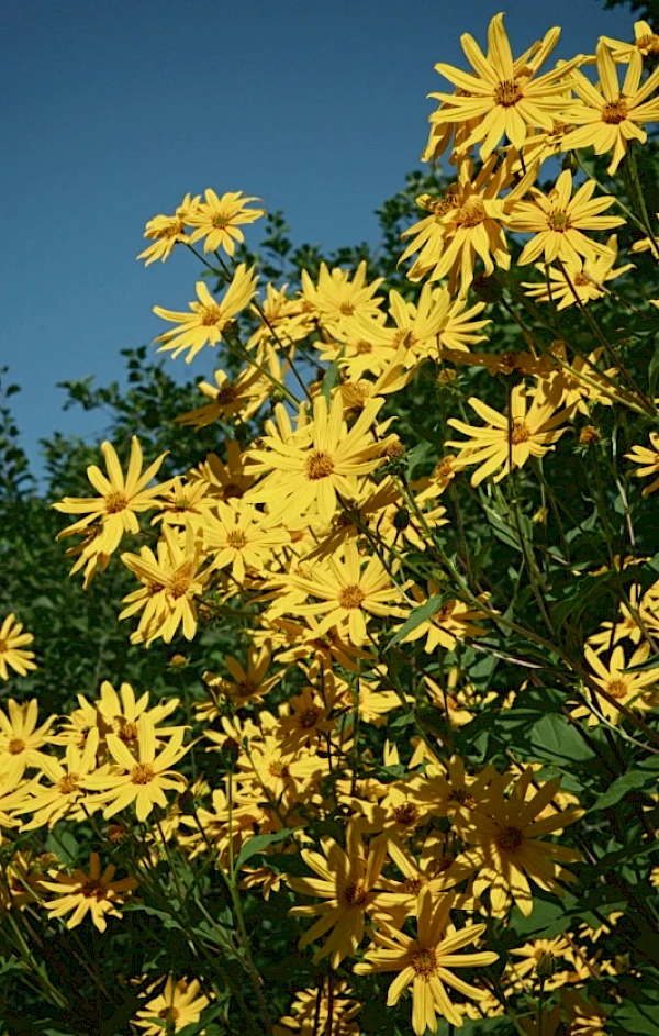 Die Pflanze blüht mit leuchtend gelben Blumen, die zudem Bienen und andere Bestäuber anziehen, was zur Förderung der Artenvielfalt beiträgt. Topinambur wächst schnell, ist pflegeleicht und trägt dazu bei, den Boden zu stabilisieren und zu verbessern. Durch die Integration von Topinambur in Ihren Wildacker schaffen Sie nicht nur eine Nahrungsquelle für Wildtiere, sondern auch einen wertvollen Lebensraum für verschiedene Pflanzen- und Tierarten.
