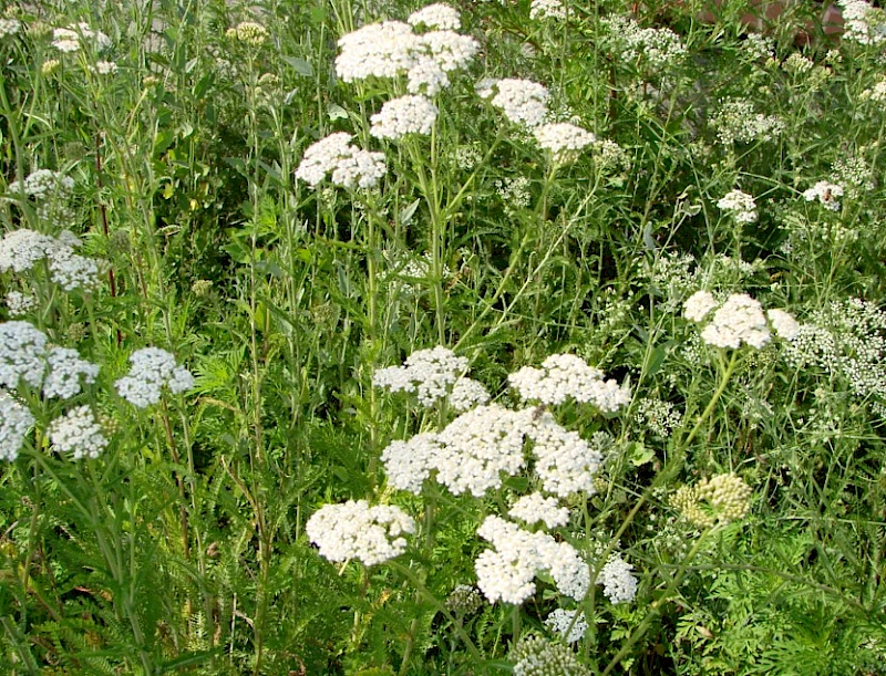 Die Schafgarbe, gemeine (Achillea millefolium), kurz auch Schafgarbe genannt, ist eine Pflanzenart aus der Familie der Korbblütler. Es sind ausdauernde, krautige Pflanzen oder Halbsträucher, die eine Wuchshöhe von sieben bis 100 Zentimetern erreichen. Als Standort werden Wiesen, (Schaf-)Weiden, Halbtrockenrasen, Acker- und Wegränder bevorzugt. Die Gemeine Schafgarbe wird als Gewürz- und Arzneipflanze verwendet. Wird sehr gut vom Wild angenommen und dient als Pollenspender für Bienen.