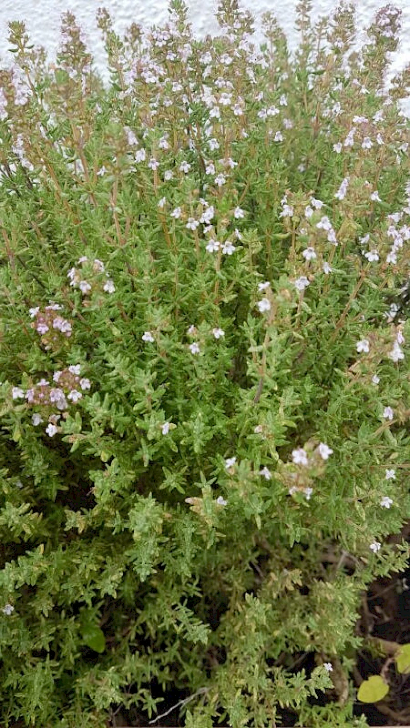 Echter Thymian (Thymus vulgaris), auch Römischer Quendel, Kuttelkraut oder Gartenthymian genannt, ist eine Pflanzenart aus der Gattung der Thymiane. Er wird als Heil- und Gewürzpflanze verwendet. Der Echte Thymian ist ein ausdauernder, stark verzweigter Halbstrauch, der Wuchshöhen von 10 bis 40 Zentimeter erreicht. Der Echte Thymian gedeiht am besten auf trockenen, flachgründig-steinigen, kalkhaltigen Böden bei ausgesprochen sommerheißem Klima. Der Echte Thymian ist eine recht gute Bienenweide.